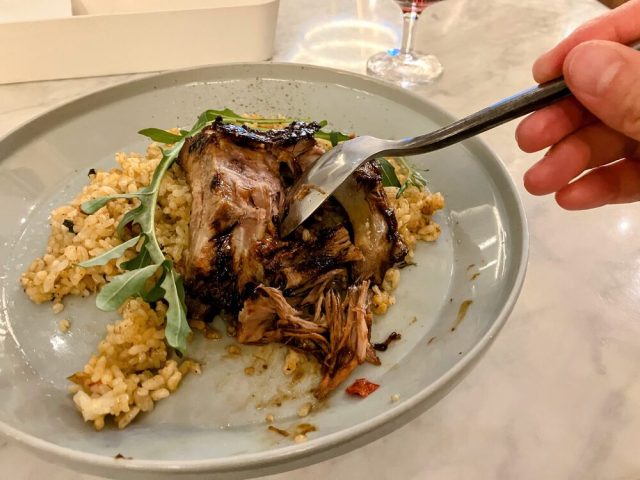 まずはスペアリブ!と前のめりになってしまい、スプーンのままお肉に切り込みをいれると、スプーンでもホロホロほぐせました。長時間じっくりと煮込まれたスペアリブは、驚くほど柔らかく、骨からすっと外れます。一口食べると、黒コショウのスパイスが効いたスパイシーな味わいが口いっぱいに広がり、たまらなくおいしかったです。