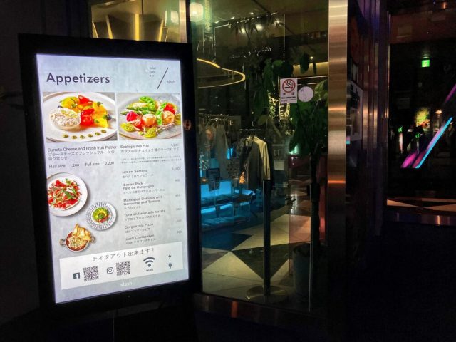入口付近にはデジタルサイネージが設置されており、そこに映し出されるメニューのラインナップを見ているだけでワクワクしました。色鮮やかなサラダ、生ハムやナチョスなど、どれもがSNS映え間違いなしのビジュアルで、「これも食べたい、あれも気になる」と入店前からメニューを楽しませていただきました。