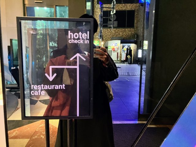 エントランスに足を踏み入れると、ホテルとレストランの入口が分かれているつくりになっています。