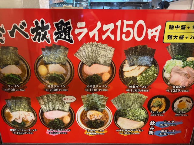 定番のラーメンをはじめ、味玉ラーメン、特製ラーメン、チャーシュー麺、旨辛ラーメンなど、家系好きなら思わず目移りしてしまうラインナップが揃っています。