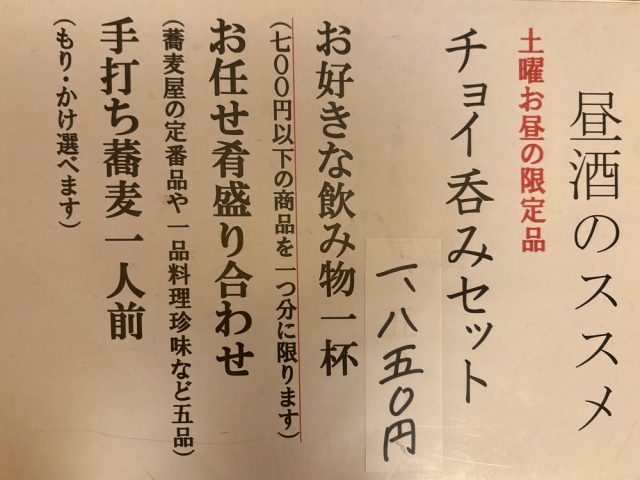 まず、目に飛び込んできたのは、土曜限定のチョイ飲みセット。