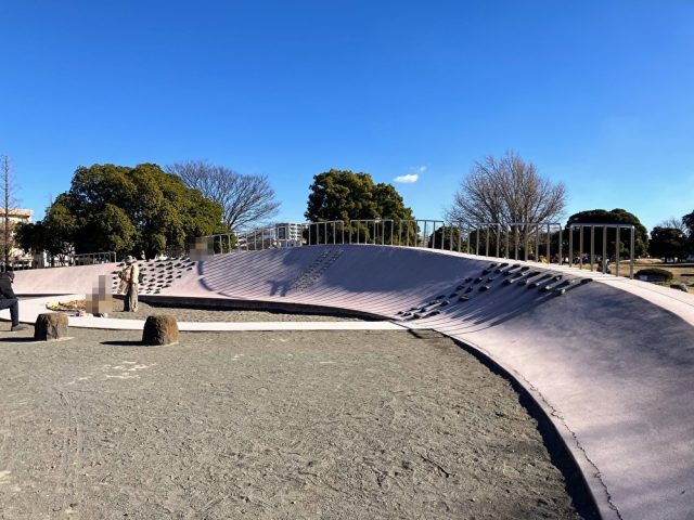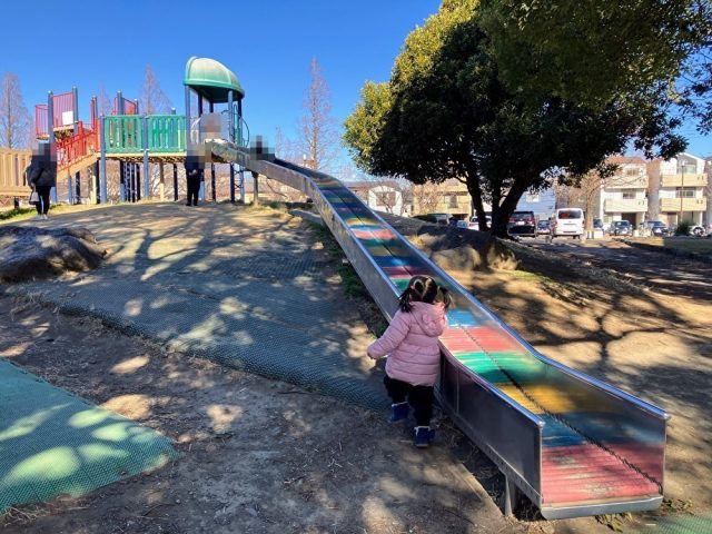 大師公園のわんぱく広場と子ども広場の素晴らしい点は、入門から上級までステップが豊富な遊具が揃っていることです。例えば、すべり台ひとつとっても、坂が急なもの、ゆるやかなもの、カーブがついているものなど、さまざまな種類があります。