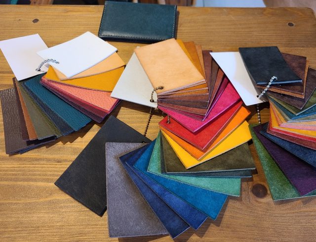 たくさんの革の色見本を見せていただきました。
