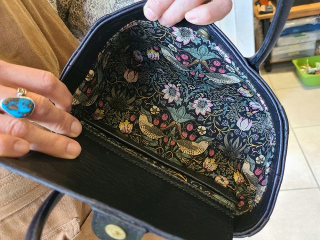 黒いバッグの内側です。中を見てびっくり!表とは違った表情をしていました。
