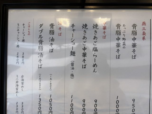 ベースは焼きあご出汁に背脂を加えた構成で、燕三条系らしいコクを持ちながらも、比較的すっきりとした飲み口に仕上がっています。