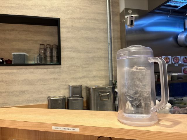 卓上には黒七味や七味、ラーメンのタレが置かれており、すりおろし生姜やニンニクはスタッフに声をかければ提供してもらえるスタイル。
