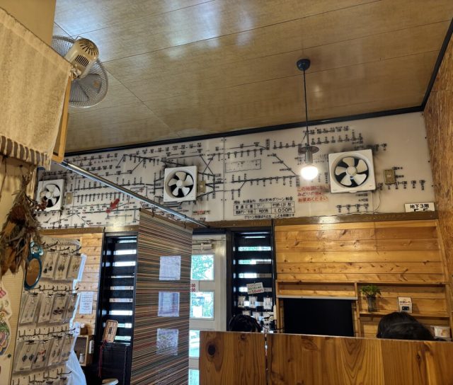 そして目を引くのが、壁に飾られた「電車の運賃表」。まるで昔の駅舎のようなユーモアあるディスプレイに、思わず笑みがこぼれます。小さな子どもも興味津々で眺め、大人も懐かしい気持ちになれる遊び心が「大幸」にはあります。
