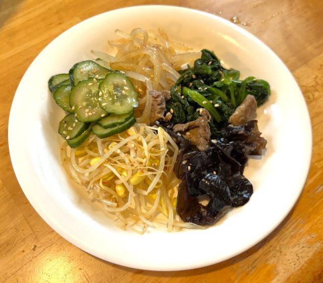 まず紹介したいのが、手作りのナムル盛り合わせ。ほうれん草やもやし、ぜんまいなどの食感がしっかり生きており、ごま油の香ばしさとほどよい塩味が絶妙です。家庭的でほっとする優しい味わいは、焼肉の合間にぴったりの一皿です。