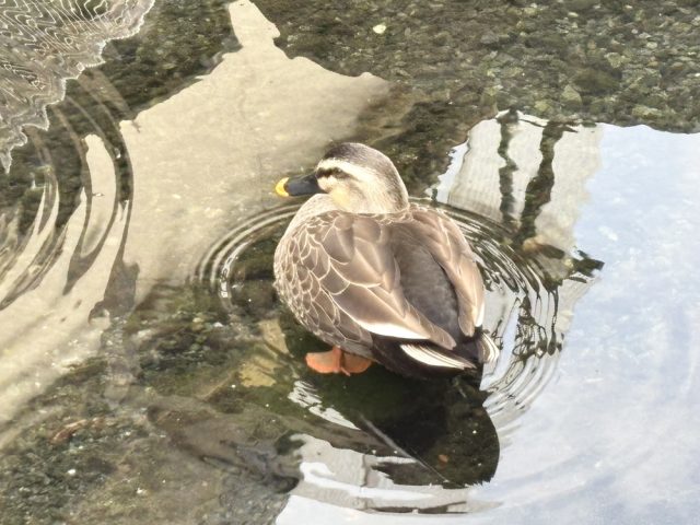 私が訪れた時には、カモが川で泳いでいました。