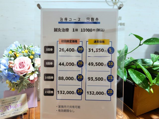 施術の効果を無理なく実感していくために、回数券も用意されています。詳しい内容や通い方については、ホームページで確認してみてください。