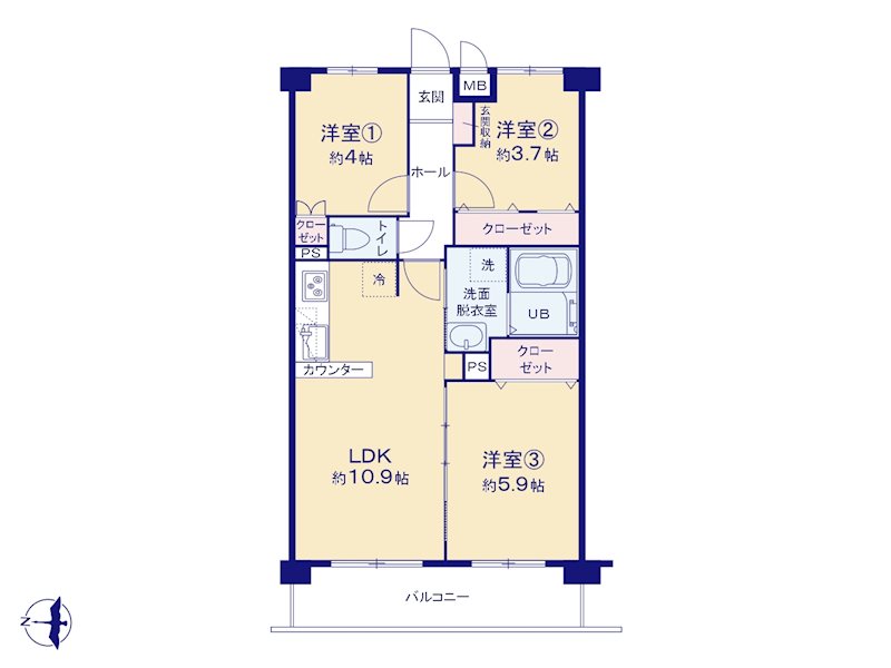 ※間取図に家具の配置が掲載されている場合は、その配置は参考例です。家具のサイズによっては配置できない場合があります。