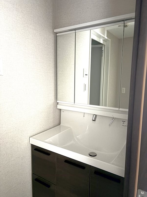 ■収納力と機能性に優れた三面鏡付きの洗面化粧台