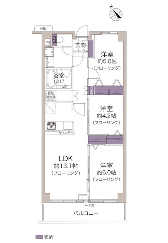 3LDK / 64.01m²(約19.36坪) |