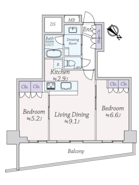 2LDK / 53.08m²(約16.05坪) |