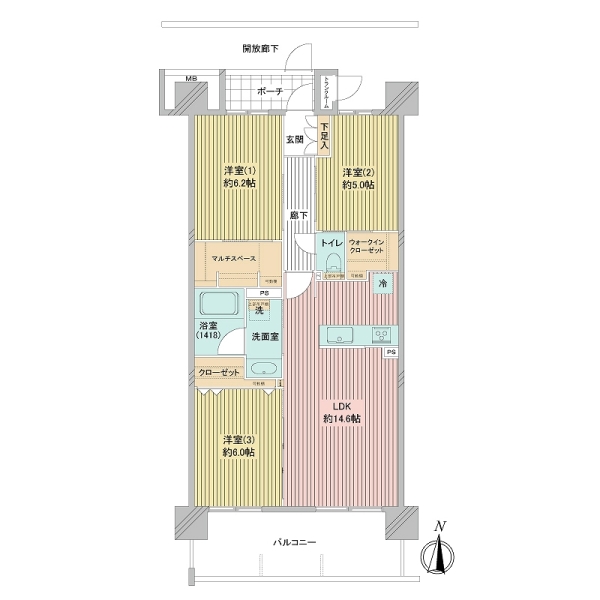 3LDK / 72.24m²(約21.85坪) |