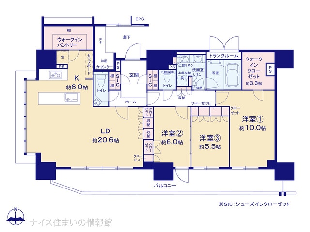 1LDK+S(納戸) 56m² 1LDK+S(納戸) / 56m² |