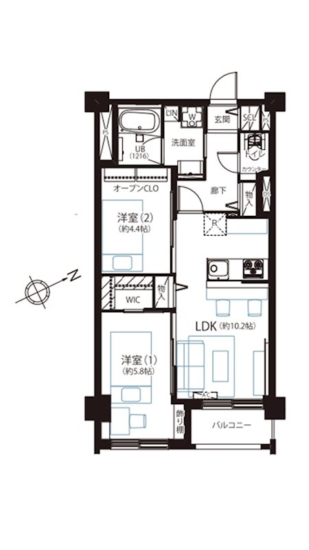 2LDK 58.39m² 2LDK / 58.39m² |