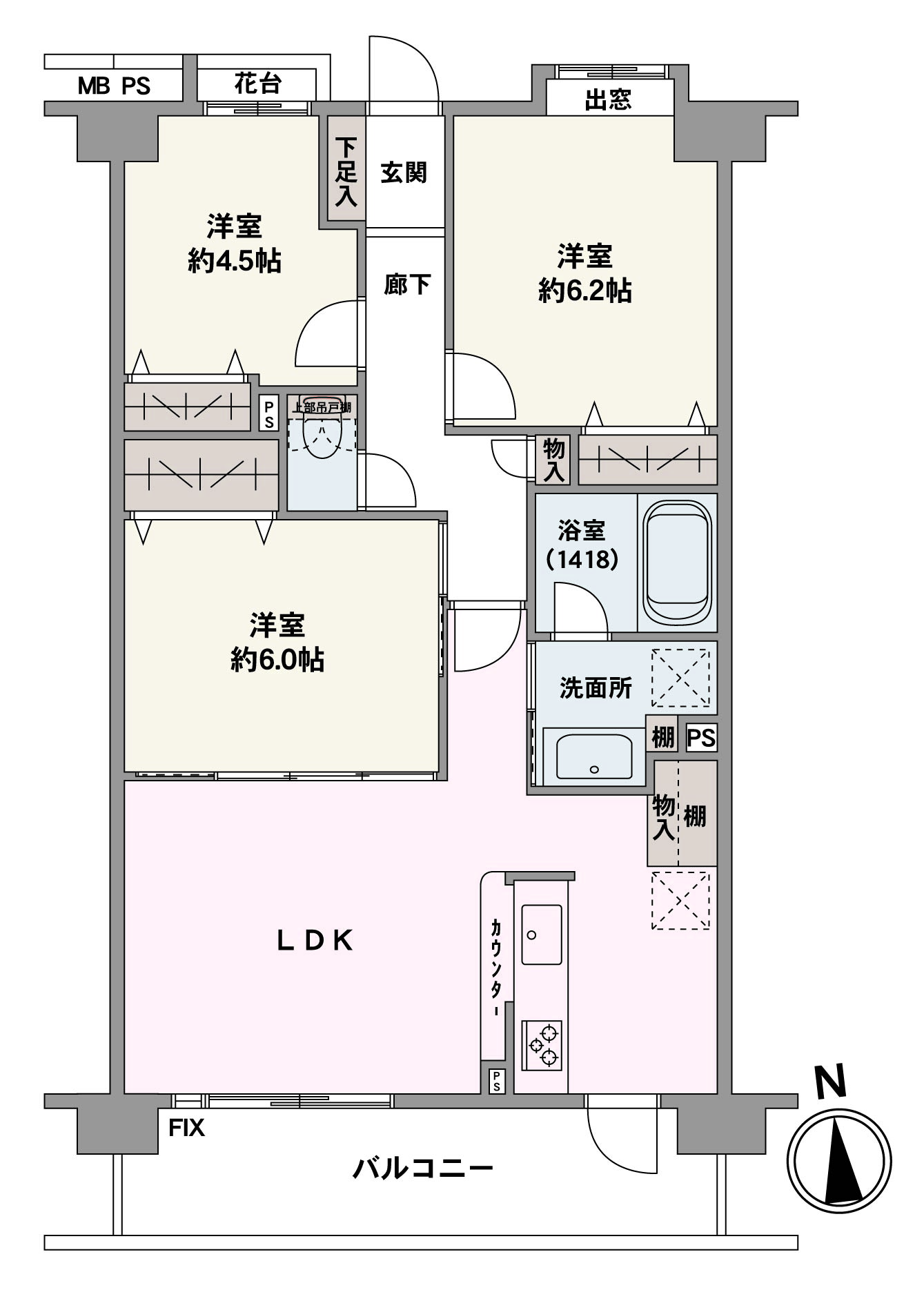 3DK 62.3m² 3DK / 62.3m² |