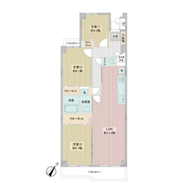 3LDK 59.85m² 3LDK / 59.85m² |