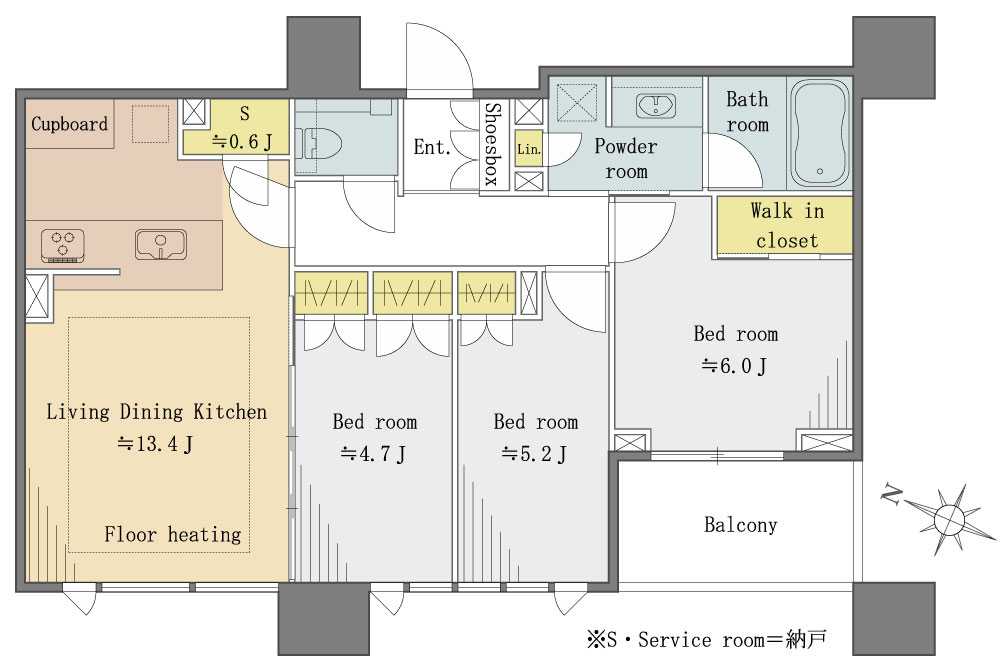 2LDK+S(納戸) 61.07m² 2LDK+S(納戸) / 61.07m² |