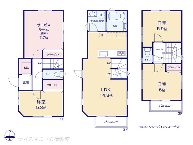 3LDK+S(納戸) 92.85m² 3LDK+S(納戸) / 92.85m² |