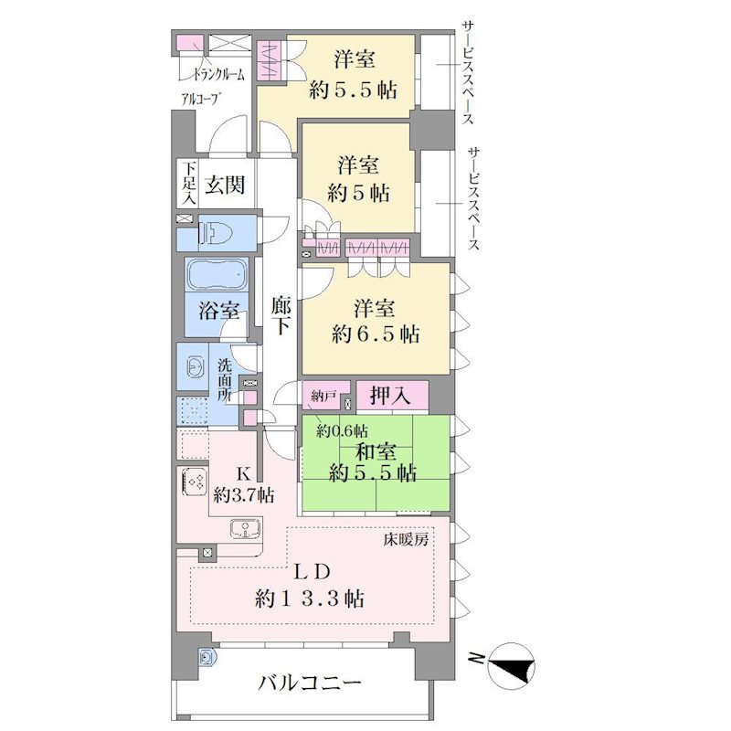 1LDK+3S(納戸) 90.55m² 1LDK+3S(納戸) / 90.55m² |