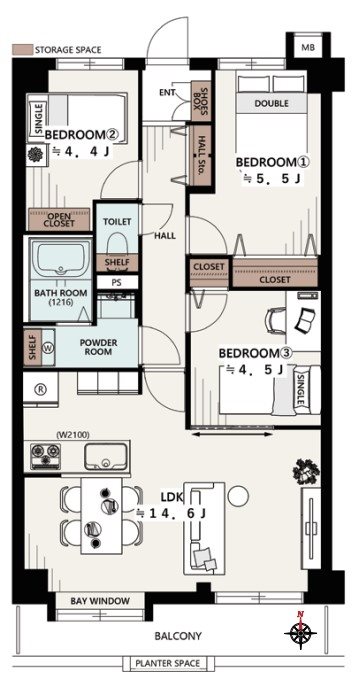 | 間取り・ 専有面積 |