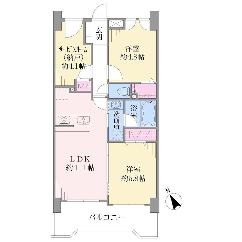 2LDK+S(納戸) 56.99m² 2LDK+S(納戸) / 56.99m² |