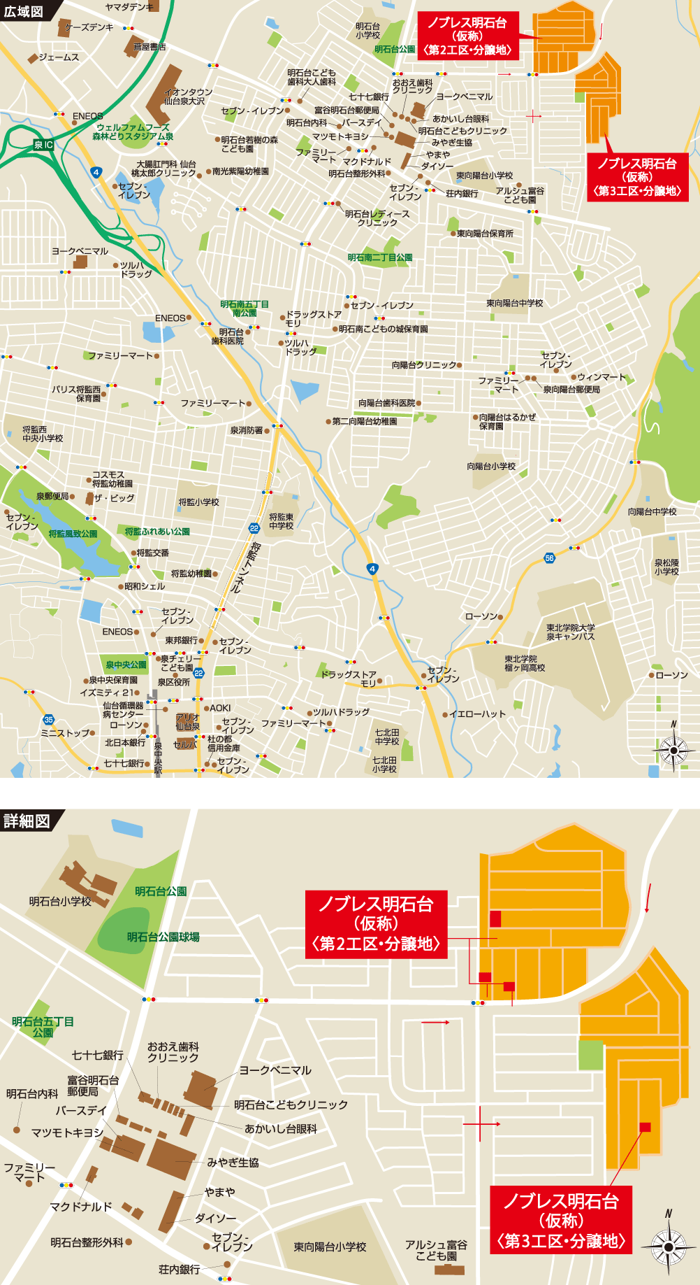 <No.1・No.3>宮城交通「明石台東」バス停徒歩4分 <No.5>宮城交通「明石台7丁目」バス停徒歩8分 - お問い合わせ先