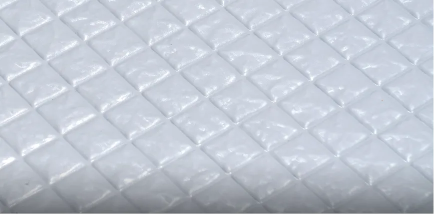 タテヨコに規則正しく刻まれたパターンで、表面の水を誘導。翌朝にはカラリと乾き、靴下のまま入っても大丈夫です。