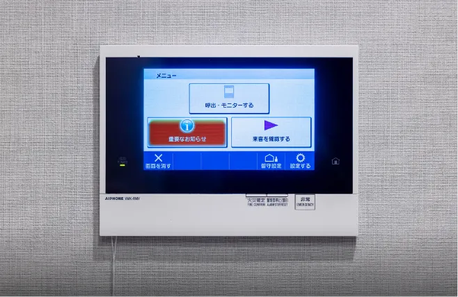 訪問者を住戸内のカラーモニターで確認してからエントランスドアを解錠できるオートロックシステムを採用。プライバシーを守り、無用な来訪者の侵入を防止。都市生活の快適さと安心に配慮しました。