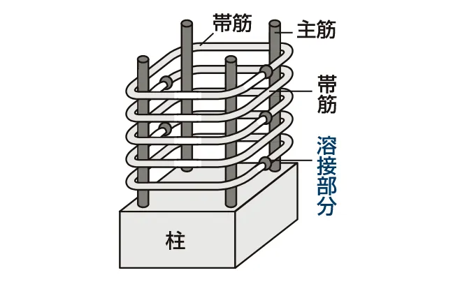 溶接閉鎖型帯筋とは工場で溶接をして閉じた形にした帯筋のことで、コンクリートを拘束する能力が高く、通常の帯筋よりも大地震時の粘り強さに優れています。