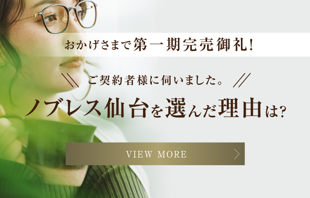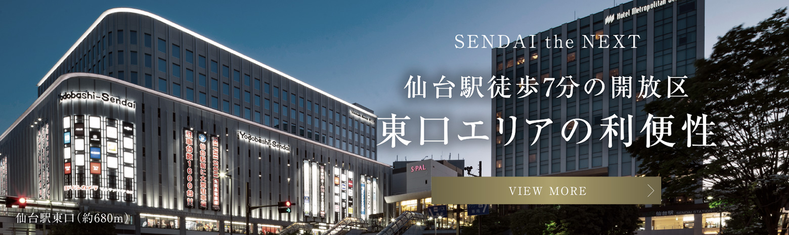 ※1:東北随一とは、東北6県においてJR東日本エリア内の1日平均の乗車人員が最も多い駅(出典元:JR東日本HP・各駅の乗車人員2022年度調べ)を基に表現しています。※掲載の完成予想CGは計画段階の図面を基に描き起こしたものと2024年5月に撮影した現地周辺の街並みを合成加工したもので形状・色等は実際とは異なります。外観形状の細部、照明・排水設備・室外機・雨樋・換気口・各種桝等の設備機器は表現しておりません。また、植栽については特定の季節・時期を想定して描いたものではありません。葉や花の枝ぶりや樹形は想定であり実際とは異なります。周辺建物、道路、電線、電柱等は省略しており、実際とは異なります。※掲載の距離は地図上でメインエントランスまたはサブエントランスから測定した概算です。徒歩分数は80m=1分で算出し、端数は切り上げております。※掲載の環境写真(imagephoto除く)は2024年4月に撮影したものです。