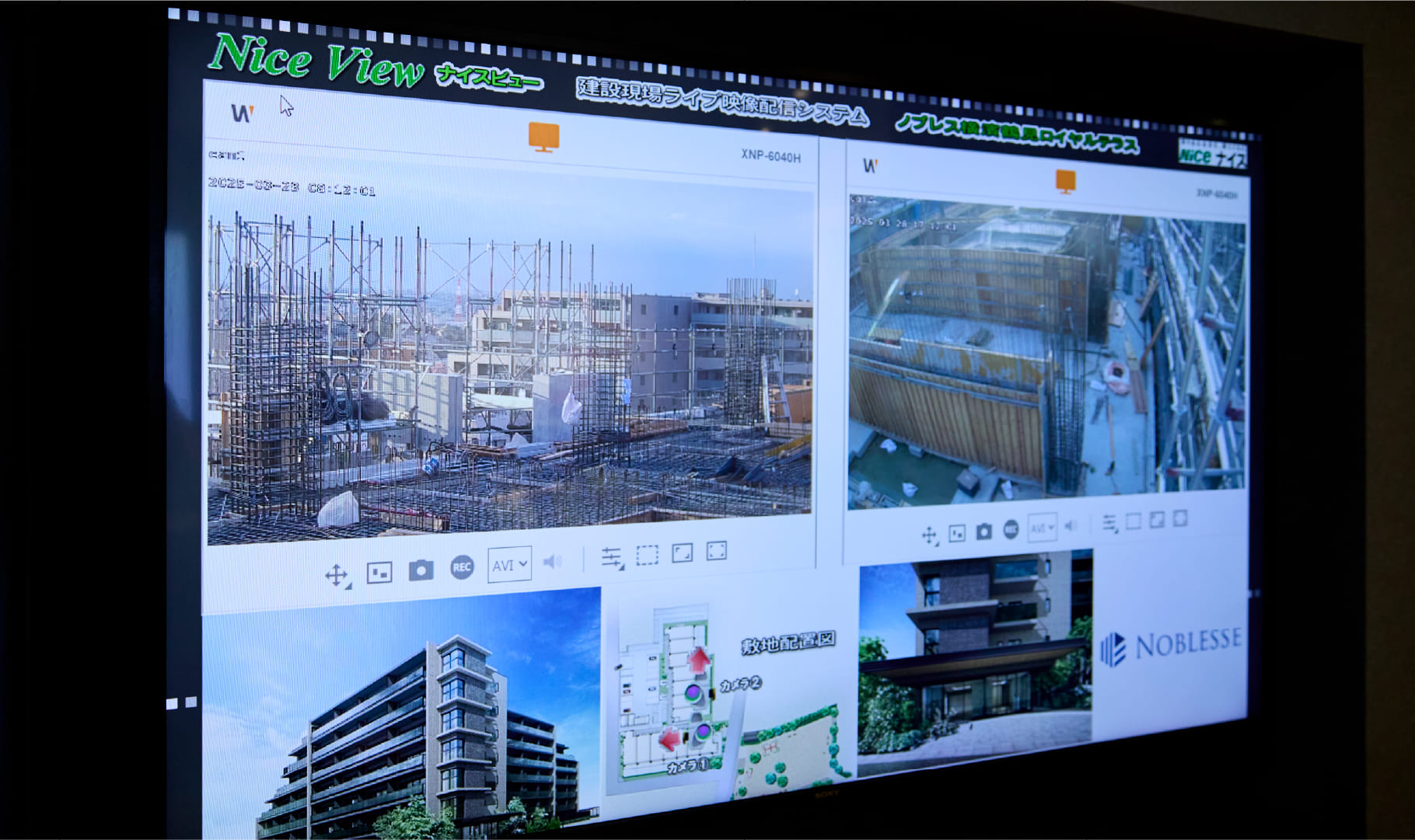 「ナイスビューシステム」は、建設現場にカメラを設置し、工事の様子をリアルタイム配信する仕組み。購入者には専用のID・パスワードが発行され、自宅から施工の進捗を確認できます。